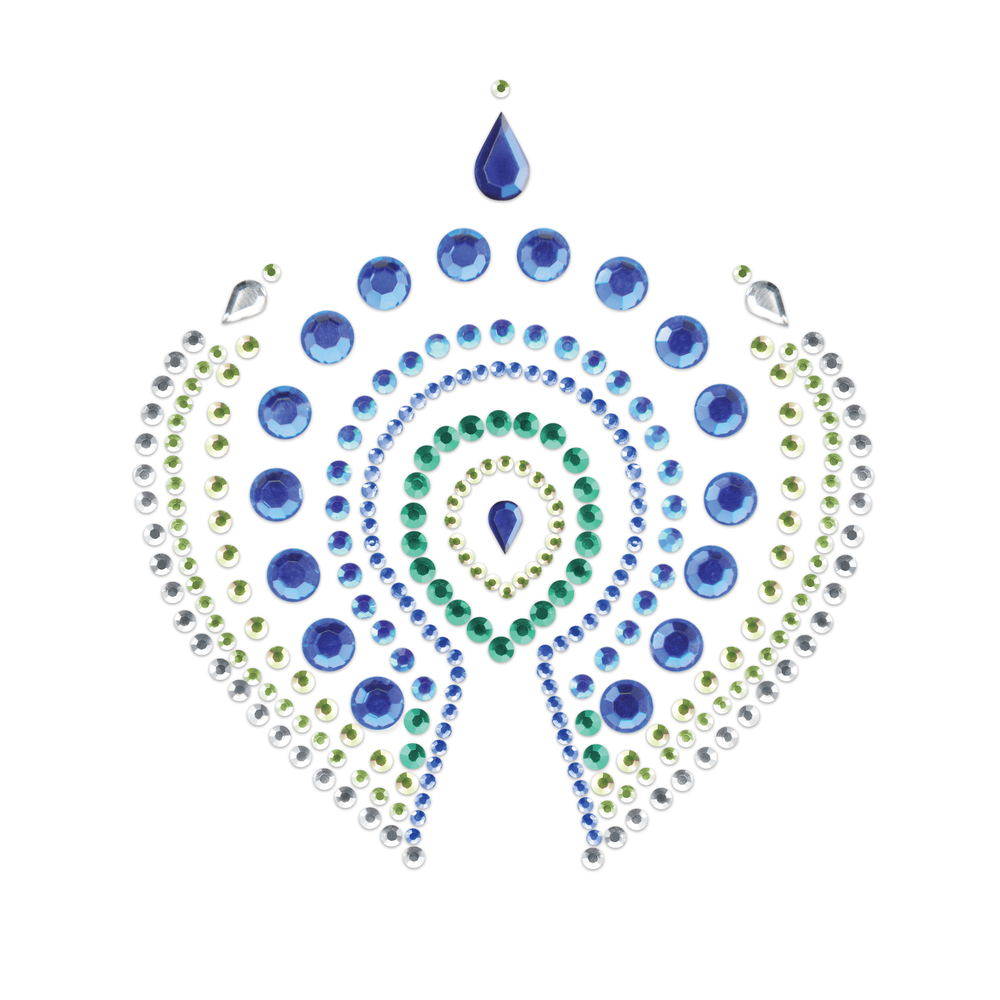 Bedazzle everyone with these beautiful body decorations and be as beautiful as a peacock. Pack Includes 3 tattoos plus belly button. Adorn the delicate beauty of your breasts, V zone, lower back or bejewel your upper arm with this gorgeous pack. Pack Includes 3 tattoos plus belly button ring. Re-usable, very easy to apply and very easy to take off. Light to wear.